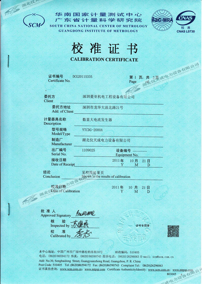 首頁 > 預防性檢測設備 > 鑒定證書 >